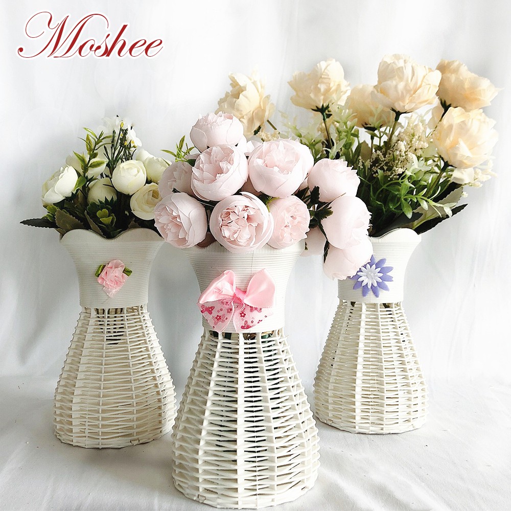 Creative Pe Plastic Weaving Vase Twined Pot Home Decor Decoration