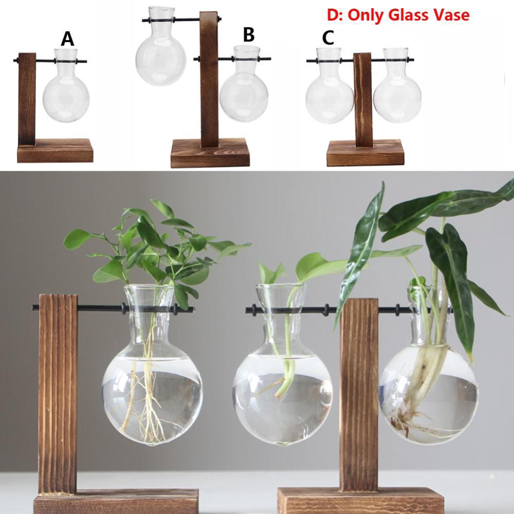 Hydroponic Plant Vases Vintage Flower Pot Transparent Vase Wooden